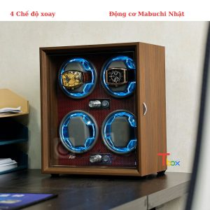 Tủ lên cót cho 4 đồng hồ cơ có đèn LED với 5 chế độ xoay W143-B