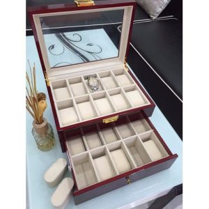 Hộp đựng đồng hồ 2 xoay 3 bày gỗ đỏ HX323H