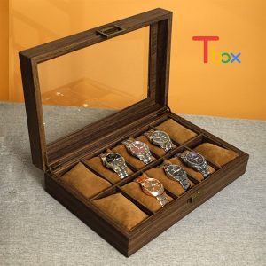 Hộp 4 xoay 6 bày bọc nỉ – GỖ ĐEN – W116-B