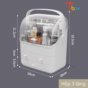 Hộp mỹ phẩm Hz 3 lớp M2-L XOB-08 Trắng KT 27×20.5×40.5