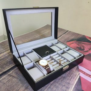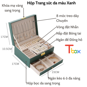 V3-D Ví trang sức vừa 3 ngăn KT 16×11,5×5 Đen